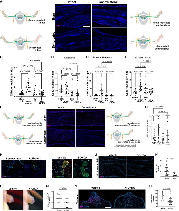 Чтобы доказать это, исследователи применили вещество, которое химически разрушает окончания симпатических нервов. У таких аксолотлей после ампутации не наблюдалось ни ускоренной регенерации, ни активации клеток в удаленных конечностях. Более того, даже локальное восстановление на месте первой травмы было сильно затруднено.