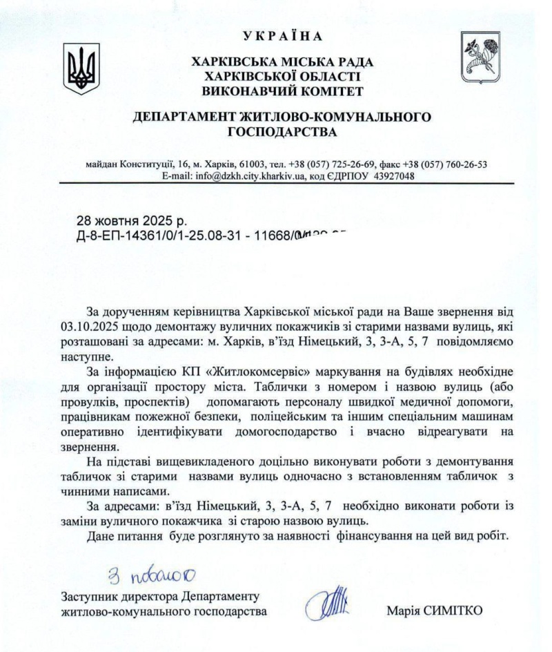 Так, на запрос «инициативной группы граждан» на предмет замены старых табличек на новые из городского департамента ЖКХ был получен ответ, что, дескать, денег для замены табличек на «деколонизированных» улицах нет.