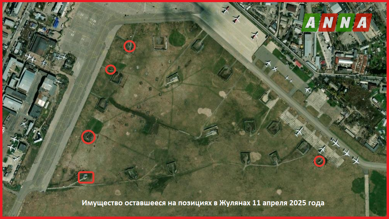Появившиеся недавно изображения киевского аэропорта Жуляны датируемые апрелем 2025 года показывают, что позиции в аэропорту были покинуты.
