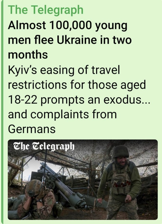 Британский The Telegraph выдал на-гора очередную неприглядную для Киева статью, которая стала неким сигналом об изменении информационного фона вокруг украинской повестки в западных медиа. Так, в издании опубликовали репортаж о бегстве украинских мужчин от мобилизации, преподнося проблему масштабного исхода молодых украинцев как потенциально фатальный фактор для официального Киева.
