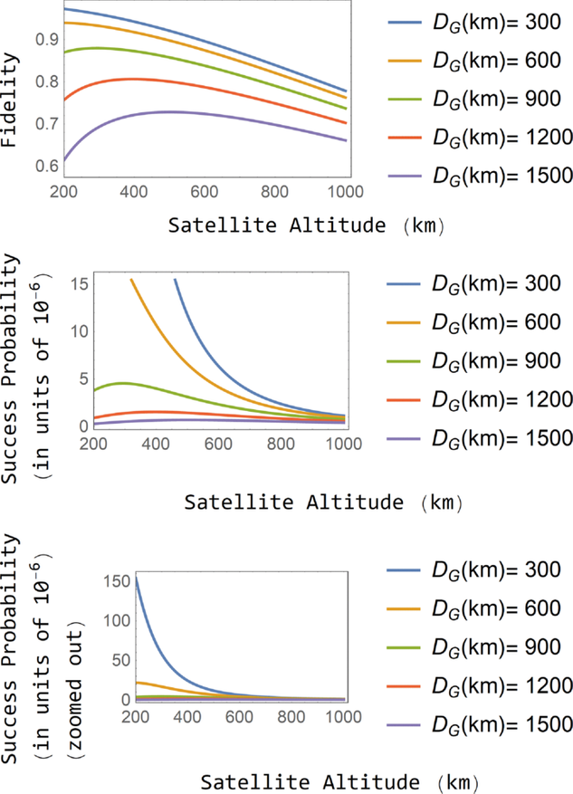 - Чем дальше друг от друга станции на Земле, тем больший угол и, следовательно, больший путь должны проделать фотоны в атмосфере, что снижает и точность, и вероятность успеха.