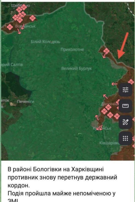 Российские военные прорвали границу в Харьковской области — в районе Бологовки, и планируют соединить плацдармы в регионе, севернее Купянска.