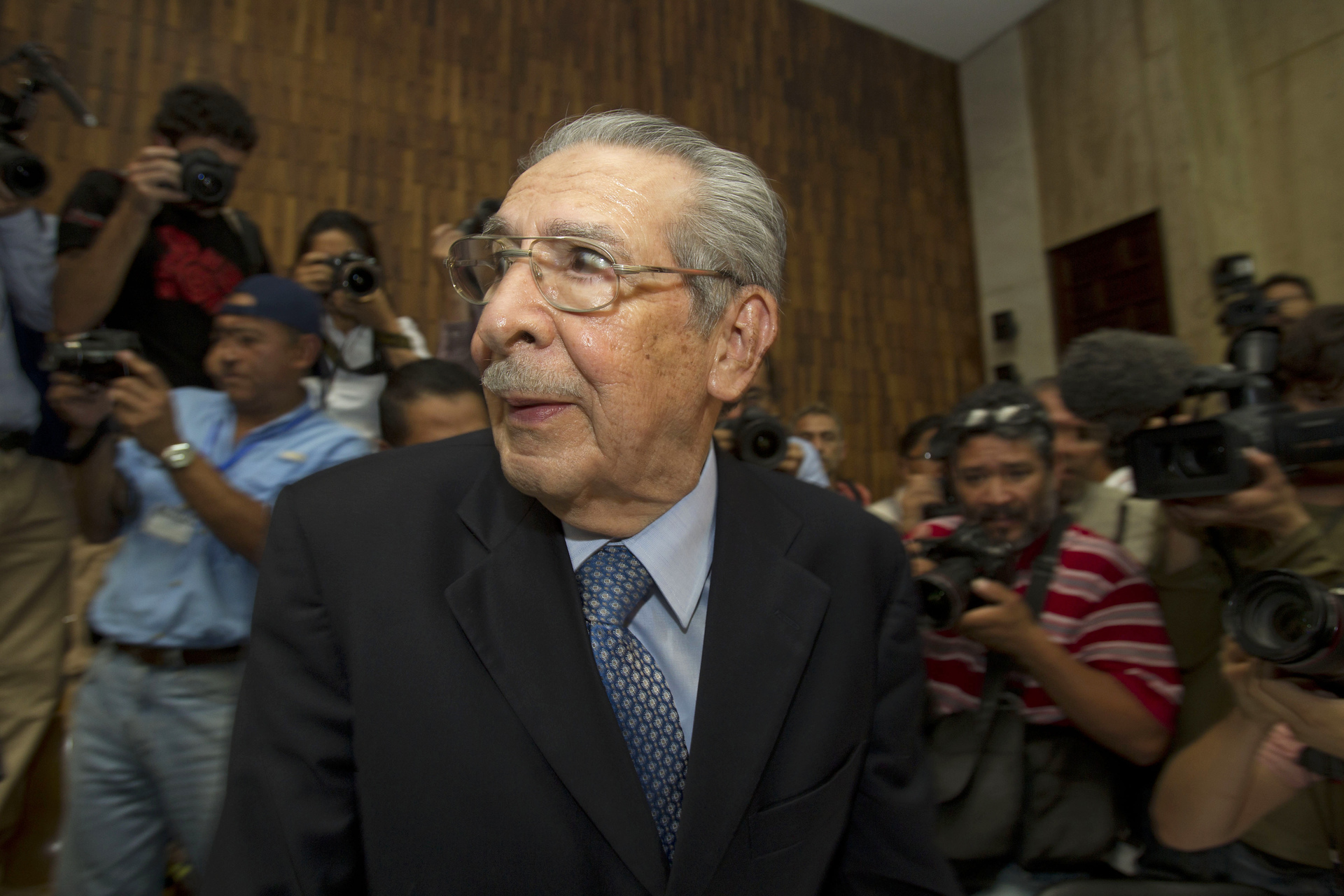 - Бывший диктатор Гватемалы Хосе Эфраин Риос Монтт в наушниках слушает приговор по делу о геноциде
