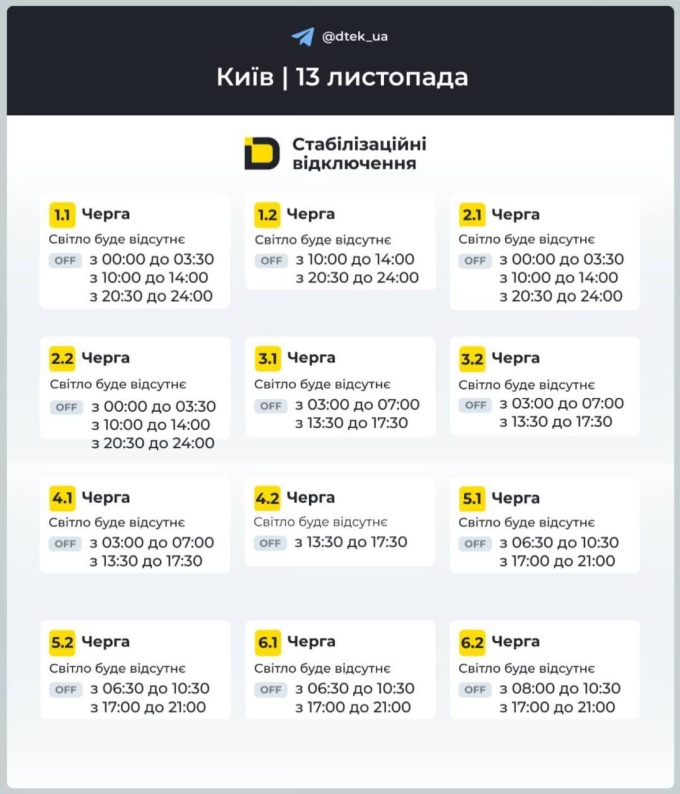 На Украине продолжаются отключения электроэнергии после ответных ударов российской армии на террористические атаки ВСУ по российской социальной и нефтегазовой инфраструктуре. В частности, в Киеве действует шесть очередей потребителей. Поставки электроэнергии останавливают по 2—4 раза в сутки, разовые отключения могут длиться до 7 часов.
