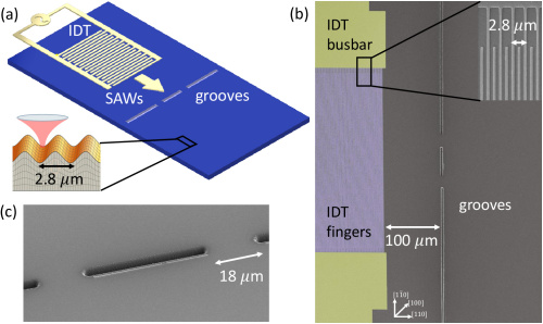 В эксперименте использовали не обычные звуковые волны, а поверхностные акустические волны (ПАВ). Это механические колебания, которые бегут по поверхности твердого тела, подобно ряби на воде, но в гигагерцевом диапазоне. У таких волн крайне малая длина — порядка микронов.
