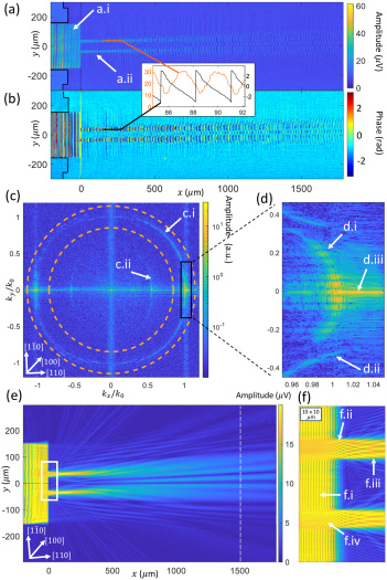 Именно это и произошло в эксперименте. Волны, вышедшие из щелей, распространялись под разными углами. Из-за анизотропии GaAs их скорость была разной для разных направлений. Волны, идущие прямо, имели одну скорость, а те, что отклонялись в стороны, — немного другую. Это небольшое, менее 1%, различие в скорости привело к двум эффектам: