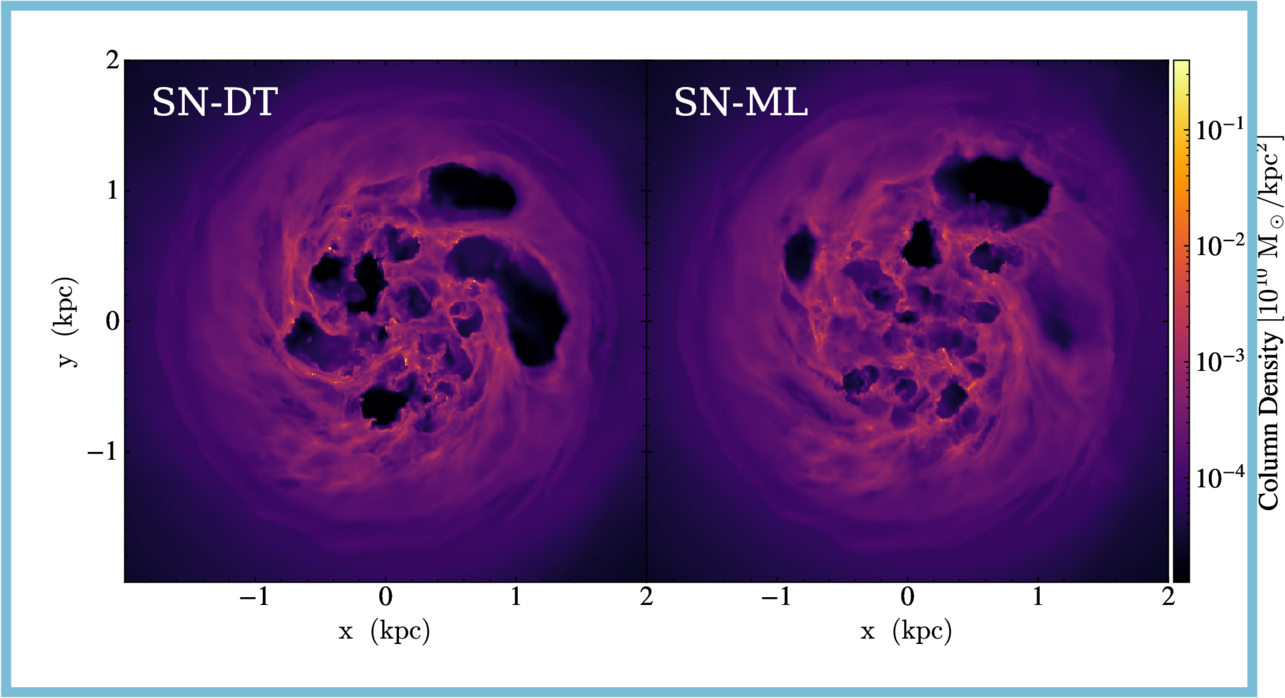Такой подход позволил преодолеть ограничение в один миллиард частиц, которое десятилетиями сдерживало астрофизиков. Новая симуляция оперирует 300 миллиардами частиц, что впервые позволило достичь позвездного разрешения для галактики масштаба Млечного Пути (результаты моделирования находятся под некоммерческой лицензией, поэтому их можно посмотреть в оригинальной работе, нажав на этот текст).