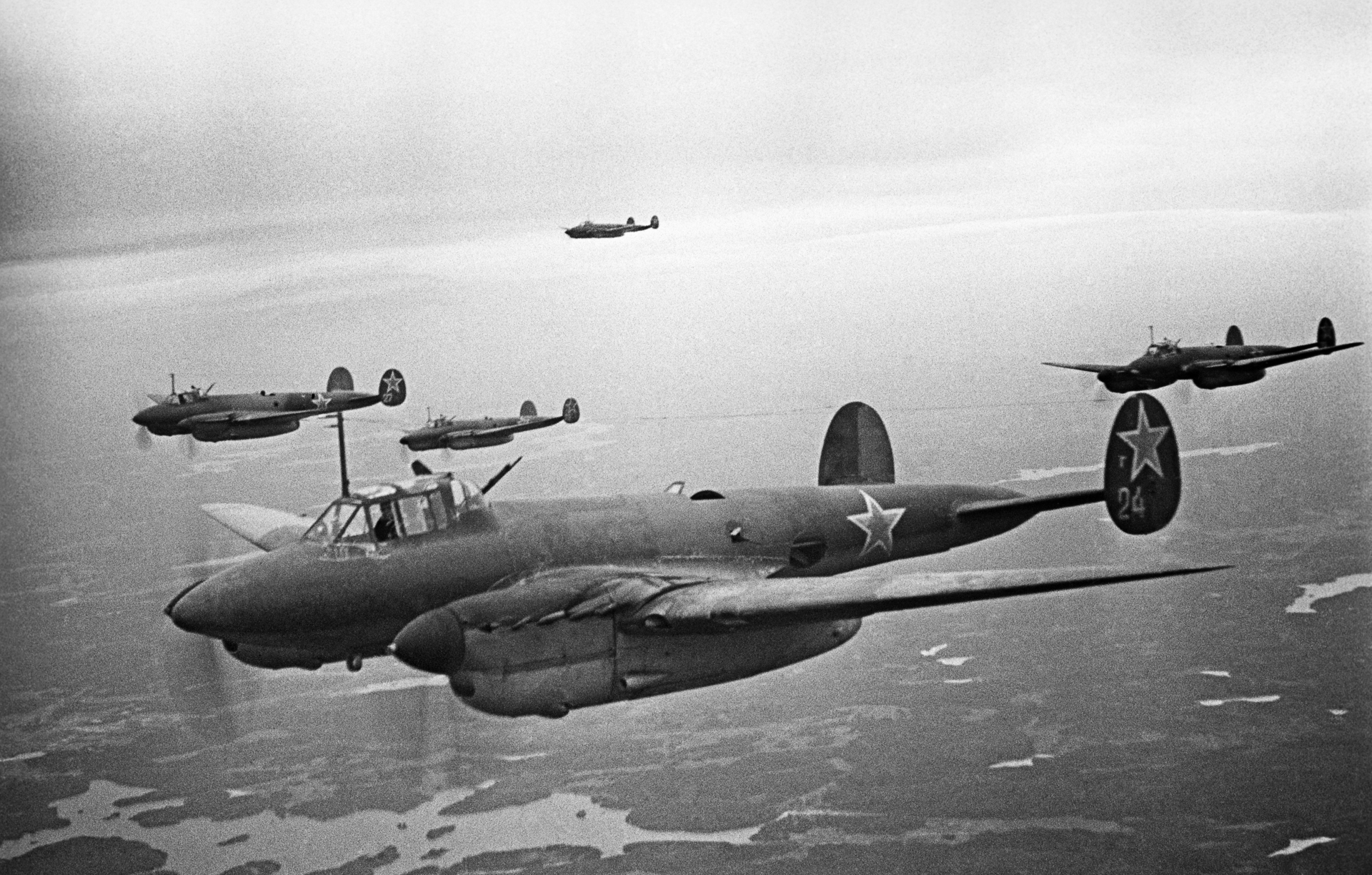 - Освобождение Карелии в ходе Свирско-Петрозаводской наступательной операции войск левого крыла Карельского фронта. Эскадрилья советских бомбардировщиков Пе-2 в полете над Карельским перешейком