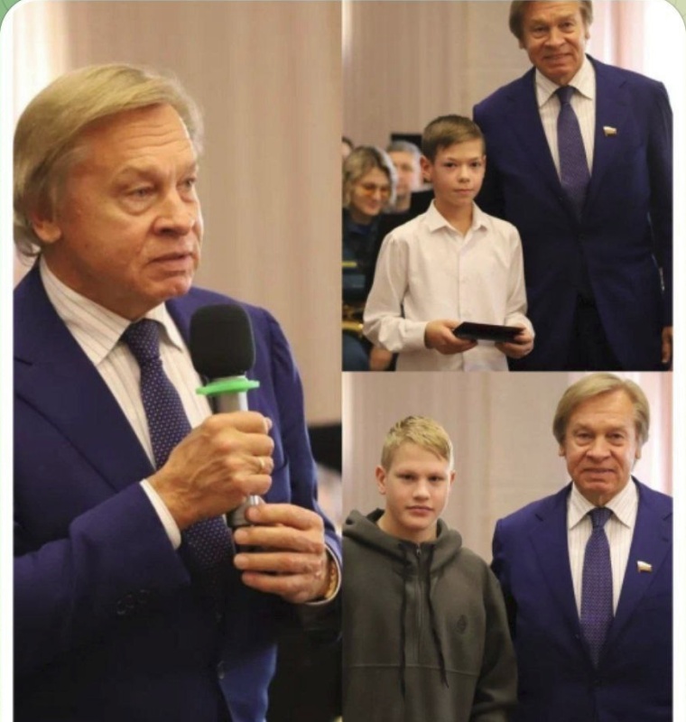 «В этом году награды получили Артем Прытков, Александр Косырев, Тимофей Белослудцев и Елисей Фадеев. Эти ребята совершили героические поступки, на которые способны далеко не все взрослые. 12-летний Александр (на фото в белой рубашке), например, вытащил из воды подростка с инвалидностью, который чуть было не утонул. А восьмиклассник Тимофей (на фото в пуловере) принимал участие в тушении пожара и помогал пострадавшим выбраться из горящего здания. Ежегодное знаковое мероприятие с отважными ребятами», — написал Пушков в своём телеграм-канале.