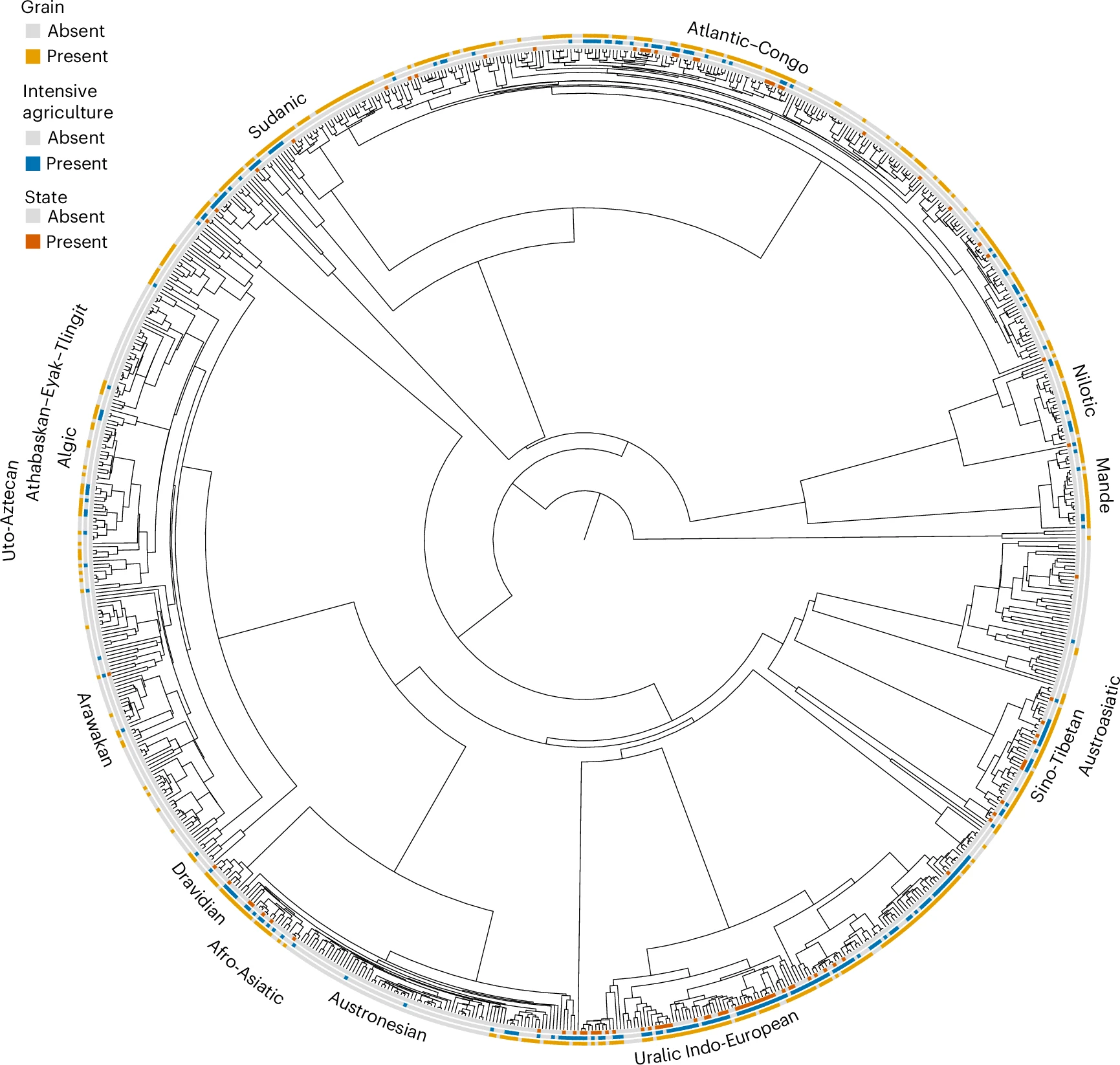 Авторы отмечают важный нюанс. Данные показывают четкую картину для большинства регионов мира, но есть исключение — языковая семья Атлантик-Конго в тропической Африке. Там возникали небольшие государства, которые базировались на выращивании корнеплодов и клубней, а не зерна.