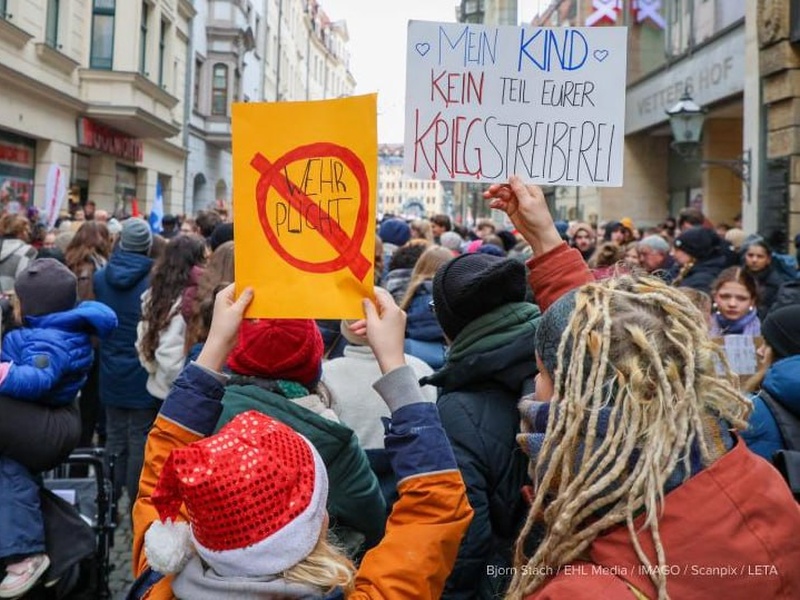 В ответ, как пишут немецкие СМИ, молодёжь заявила, что не собирается «умирать за государство» и готова выбирать бегство или оккупацию вместо войны. 5 декабря массовые протесты студентов и старшеклассников против возвращения обязательной службы в армии прошли в 90 городах Германии.