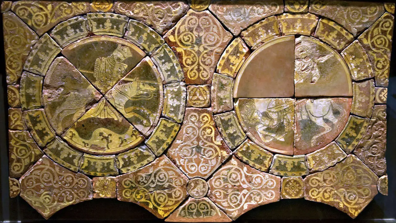Изображение Ричарда (слева) и Саладина (справа), ок. 1250-1260, на плитках, найденных в аббатстве Чертси в графстве Суррей. Британский музей, Лондон
