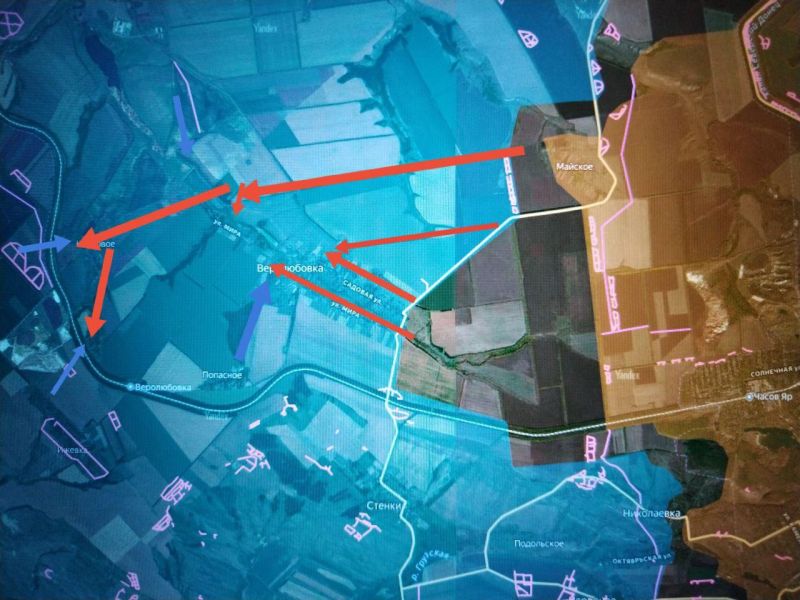 Северо-западнее Часов Яра наши подразделения выбили противника из большей части ВЕРОЛЮБОВКИ (до ставка).