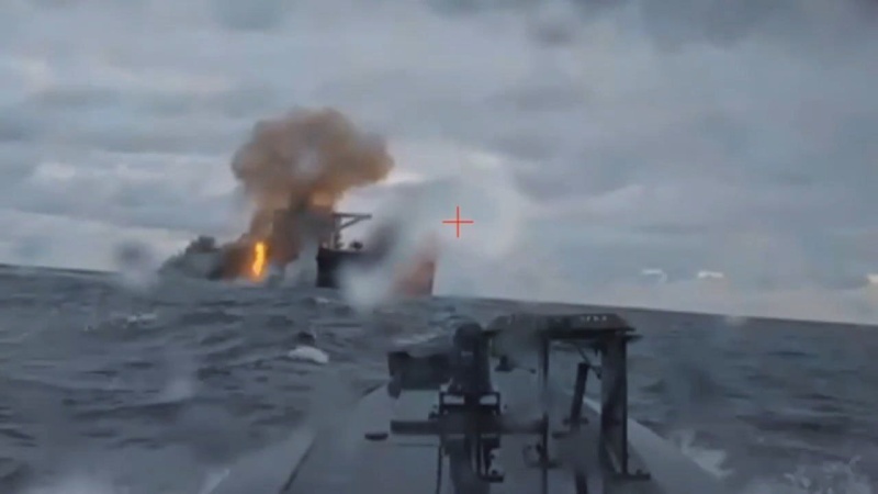 Украинские морские дроны Sea Baby нанесли удар по танкеру Dashan, который шел под флагом Гамбии из Турции. Об этом сообщают украинские СМИ, публикуя видео атаки морскими дронами танкера, как утверждается, «теневого флота РФ».