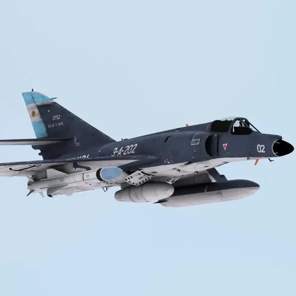 Неплохо? Но это ещё не всё! Потому что свои ВВС были у аргентинского военно-морского флота. 1-я эскадрилья морской авиации имела на вооружении 6 самолётов «Аэрмакки» МВ.339А, учебно-тренировочных и одновременно лёгких штурмовиков. 2-я эскадрилья морской авиации/штурмовая эскадрилья стала основным ударным подразделением: у неё на вооружении стояло 4 французских штурмовика «Супер Этандер». 3-я эскадрилья использовала 8 «Скайхоков» модели А-4Q — палубной версии, используемой с авианосца «25 мая», бывшего английского «Венерабль», 1944 года постройки.