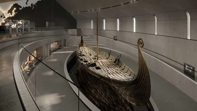 «Осебергский корабль» в новом здании Музея викингов, куда он переехал в конце ноября 2025 года. Фотография Музея викингов в Осло
