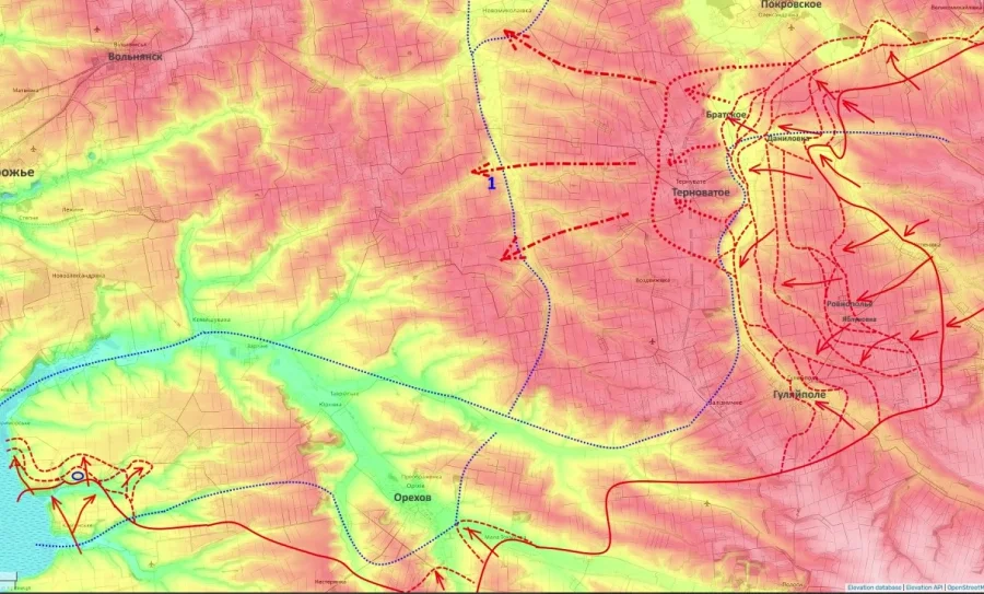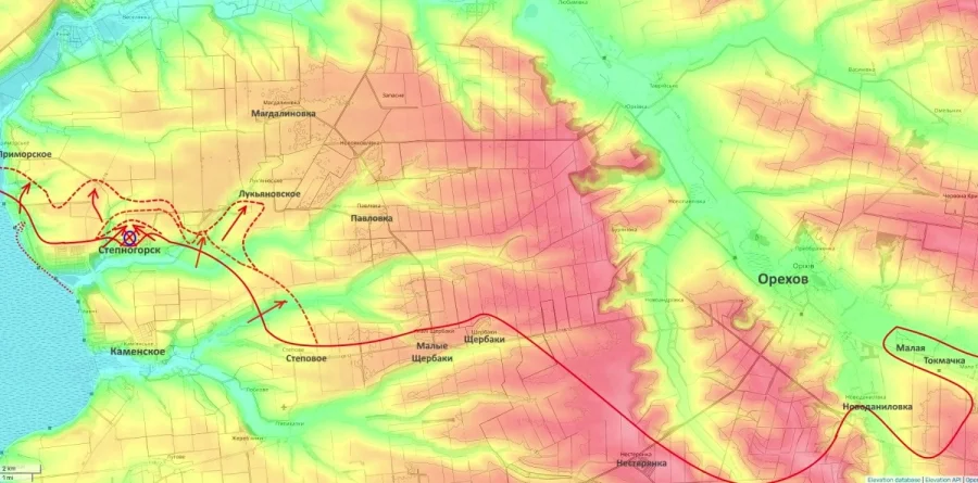 Продвижение идет как севернее самого Степногорска, так и в районе Приморского, с вектором атаки на Ульяновку.