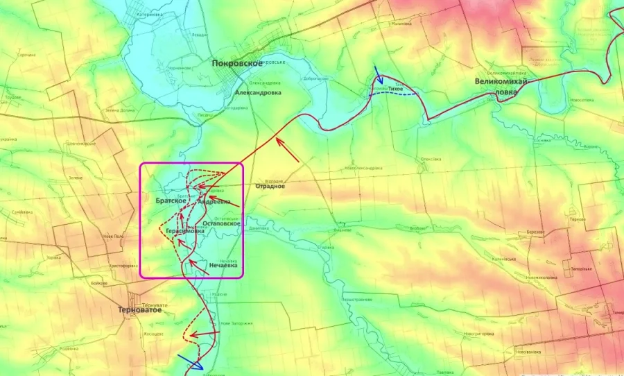 - Терноватое и Братское: Южнее Терноватого созданы плацдармы, севернее — идут бои за Братское.