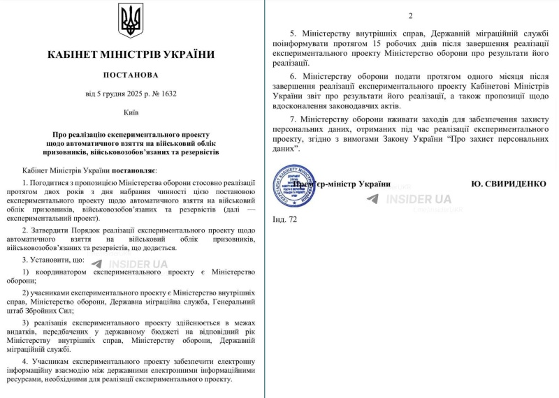 Как сообщает народный депутат Александр Федиенко в своем телеграм-канале, Кабмин утвердил экспериментальный проект по автоматическому взятию на воинский учет призывников, военнообязанных и резервистов.
