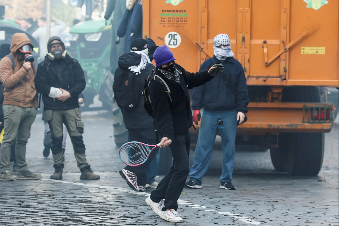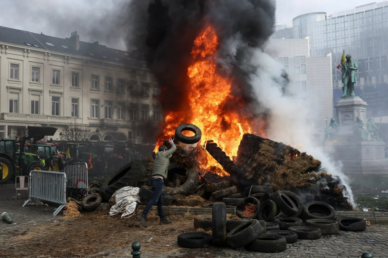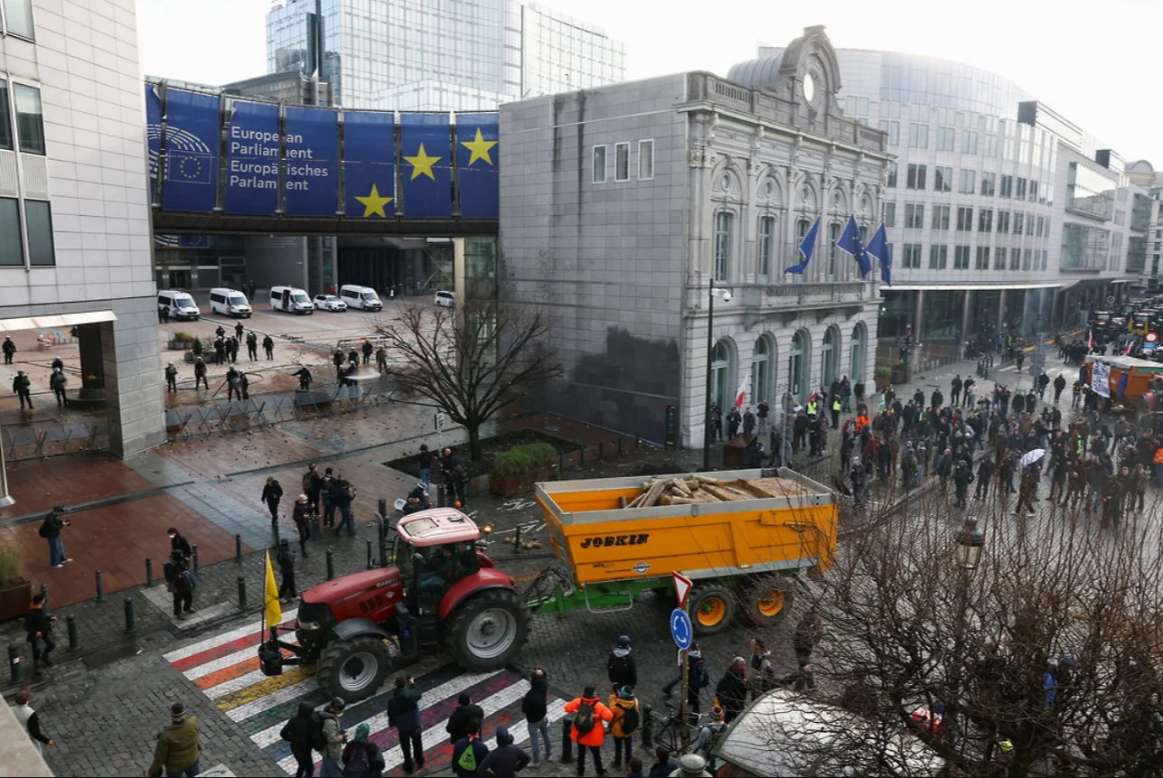 Протестующие фермеры на тракторах пытались снести полицейские заграждения по дороге в Евроквартал. Полиция в ответ применила слезоточивый газ и водомёты.