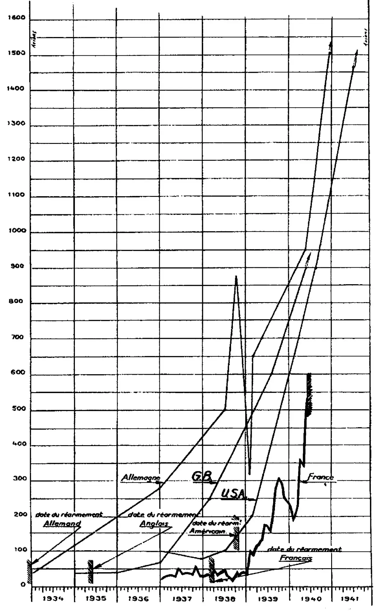 Когда Германия три года назад захотела перейти от замаскированной военной авиации к настоящей военной авиации [...], мы все пережили момент паники, и генерал [Денэн] в 1934 году отдал грозный приказ, надеясь решить проблему с помощью кредитов, и мы совершили ошибку, подтолкнув его к этому. Мы должны были в то время, как это было сделано в Германии, создать основу нашей авиационной промышленности, то есть создать крытые площадки, закупить инструменты, организовать наши заводы, мы этого не сделали.