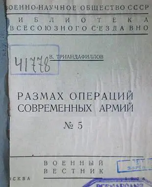 Однако главным научным трудом В. Триандафиллова стала книга «Характер операций современных армий», три издания которой вышли в 1929-1936 гг.