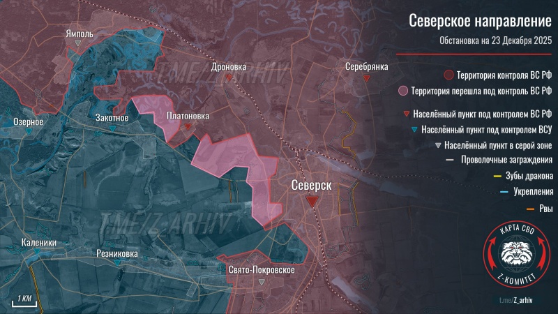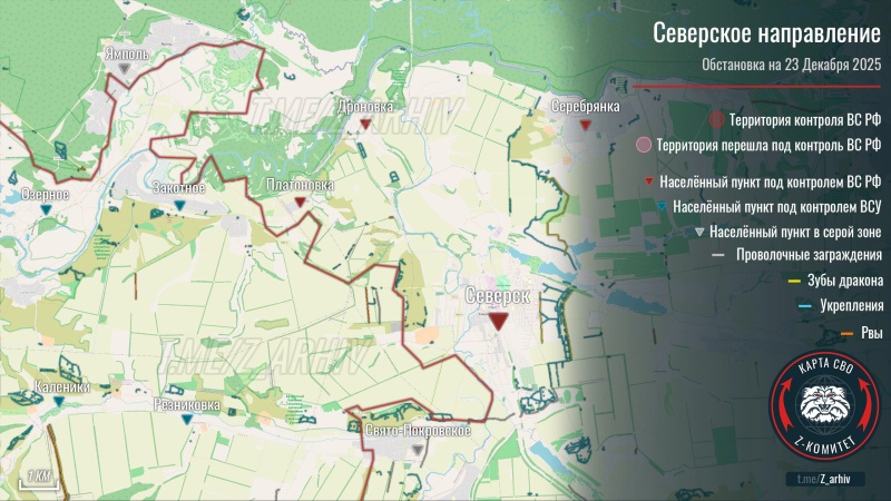 «Сегодня день откровений для украинской общественности. Сначала один из статусных нардепов поведал об «оперативном окружении» Димитрова, посетовав, что туда невозможно доставить провизию. Ну так это уже не оперативное окружение, а фирменный русский котел. Под вечер Генштаб сообщил печальную новость с другого участка фронта…Отходить там, правда, из Северска уже некому. Мы заняли город еще 11 декабря. А с 13 он наш даже на картах вражеского дипстейта. Но мы же понимаем. Важен переговорный фон. Ну, а раз уж Умеров наконец вернулся из своего головокружительного турне, то можно не стесняться. Так, под елочку, глядишь, и из Красноармейска кто-нибудь отойдет. А из Димитрова — к Рождеству, которое Зеленский отменил», — высказал свое мнение военкор Александр Коц в телеграм-канале.