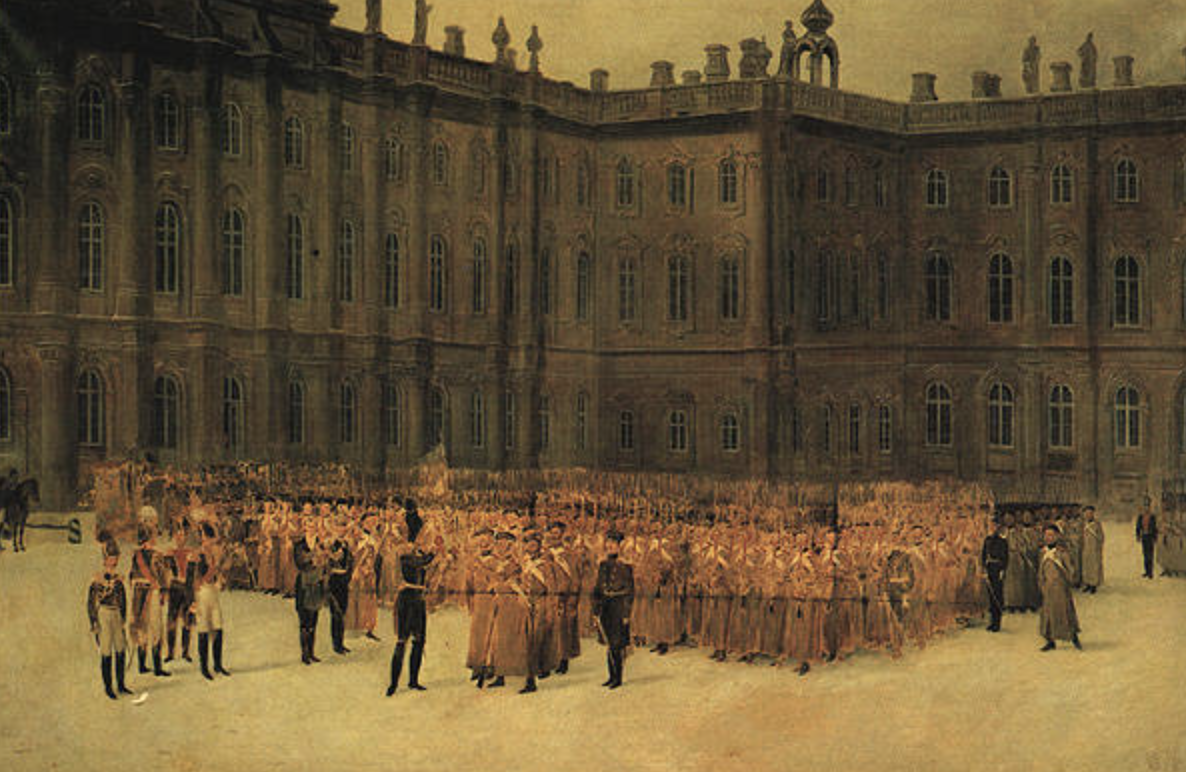 - Николай I перед строем лейб-гвардии Сапёрного батальона во дворе Зимнего дворца