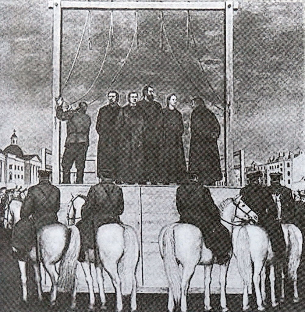 — Пятерых декабристов власти решили повесить. Трое из них сорвались с виселицы, и казнь провели только со второй попытки. Почему лишить их жизни оказалось настолько принципиальным, что был проигнорирован обычай помилования тех, кого не удалось казнить с первого раза?