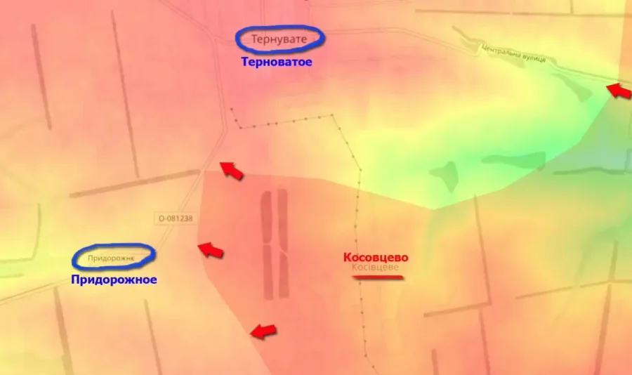В настоящее время продвижение российских войск продолжается в направлении села Придорожное, где берёт начало река Солёная. Противник удерживает Терноватое, но утрата высотного преимущества ставит под сомнение его способность долго сохранять позиции.