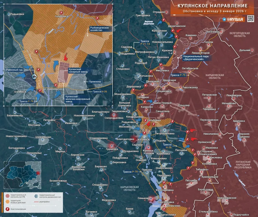 Купянск сегодня, 4 января 2026 года: внутри города продолжаются тяжёлые бои, ВСУ пытаются прорваться к центру, карта военных действий