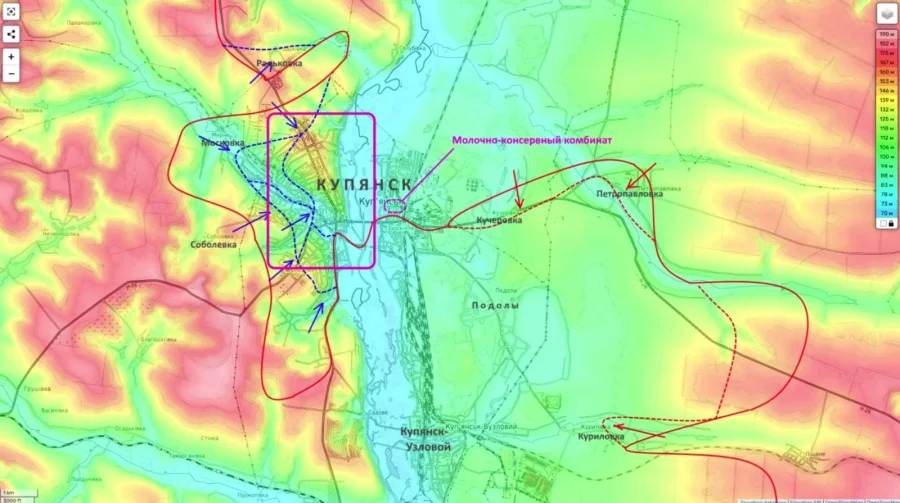 Поступают сообщения о взятии населенного пункта Подолы под Купянском (информация требует подтверждения объективным контролем). В самом Купянске (левый берег Оскола) ситуация стабильная, наступательный потенциал противника исчерпан. Ожидается, что после перегруппировки ВС РФ смогут окончательно выбить врага из западных и южных районов города.