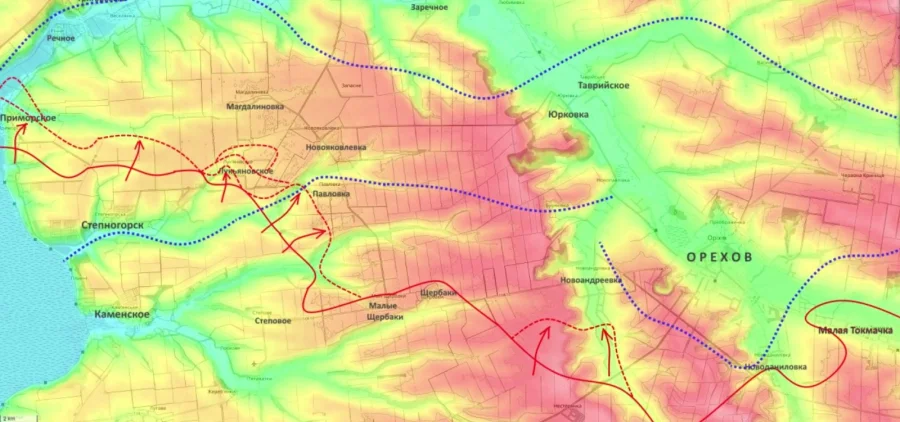 - Ореховский участок: Идет планомерное выдавливание противника в районе Белогорья и Малой Токмачки. Цель командования — занять высоты восточнее Орехова, воспользовавшись тем, что основные силы врага стянуты для удержания Железнодорожного. Это позволит начать штурм города еще до подхода основных сил группировки «Восток».