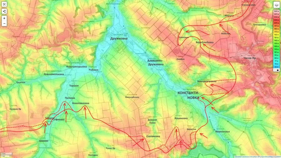 Такая конфигурация фронта свидетельствует о планомерном уничтожении фланговых очагов сопротивления ВСУ. Над гарнизоном Константиновки нависла реальная угроза полного оперативного окружения.