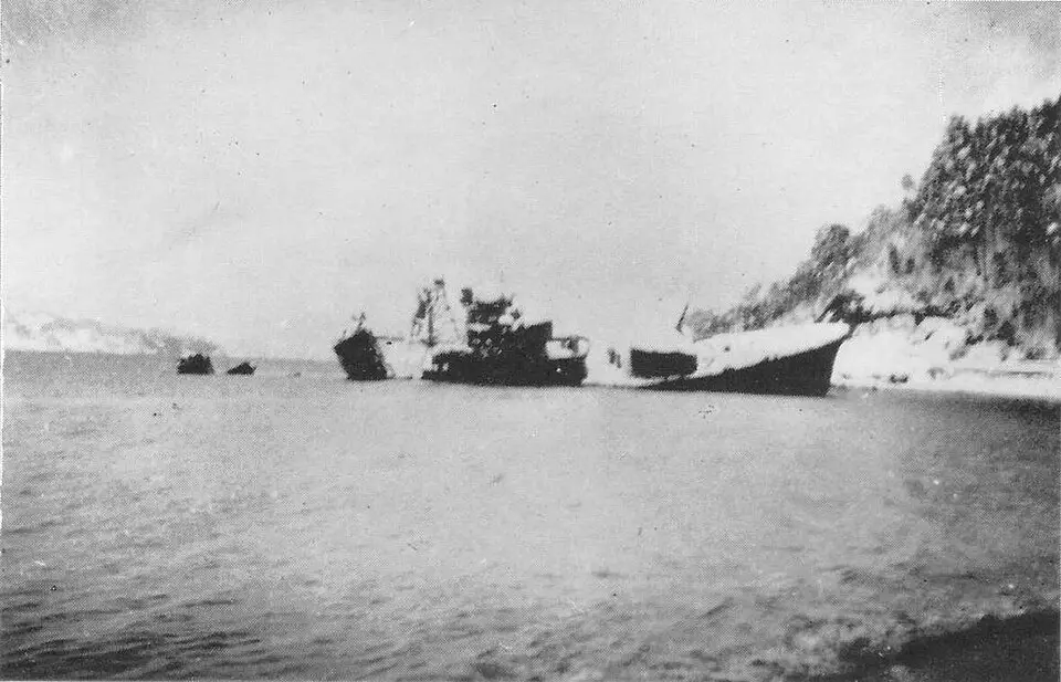 1 корабль потоплен береговой артиллерией.
