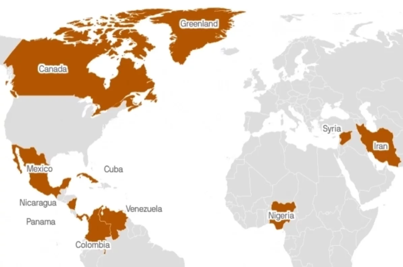 Ранее на этой неделе издание Axios написало, что Дональд Трамп привёл мир в состояние настороженности, угрожая многочисленным странам возможными военными действиями. В этой связи портал опубликовал карту, на которой выделил страны, куда могут вторгнуться американцы.