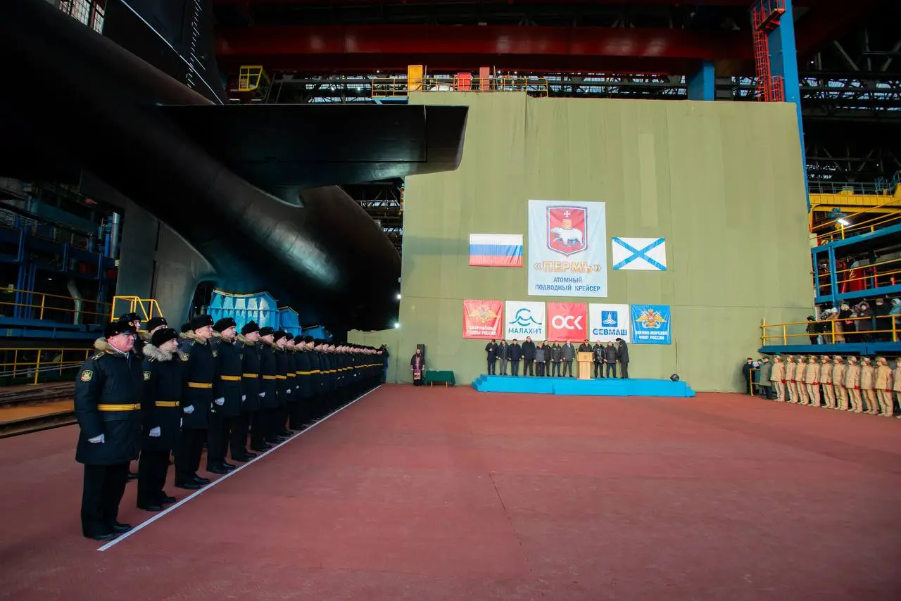 Церемония вывода из эллинга подлодки «Пермь», март 2025 г. В этом году она пополнит состав ВМФ. Фото ОСК