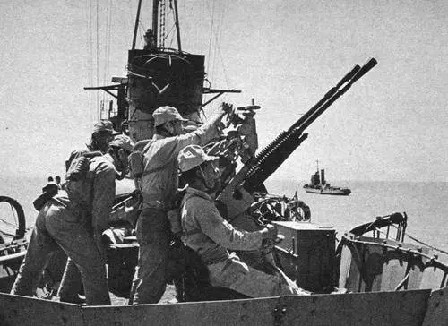 5. Пулеметы 7,7-мм по бокам мостика заменили на 13,2-мм, а на освободившееся место от орудия №3 натыкали 25-мм зенитных автоматов. В среднем их количество равнялось 10 стволам, 13,2-мм пулеметов могло быть до 5 единиц.