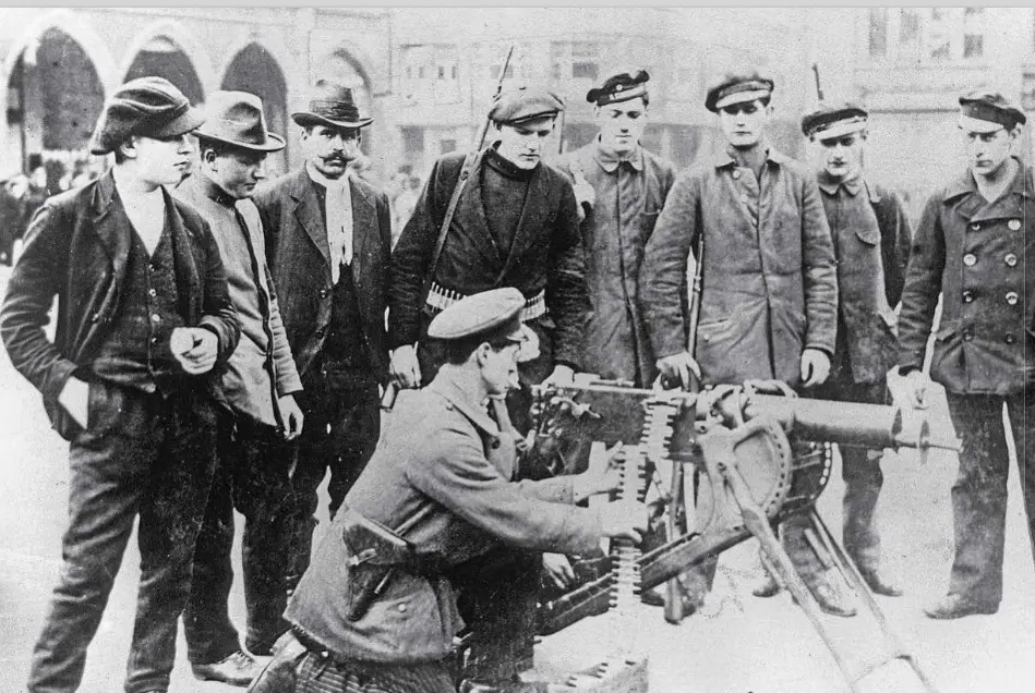 Рабочие устанавливают пулемет на площади Ханзаплац в Дортмунде и готовятся к «встрече» фрайкоровцев