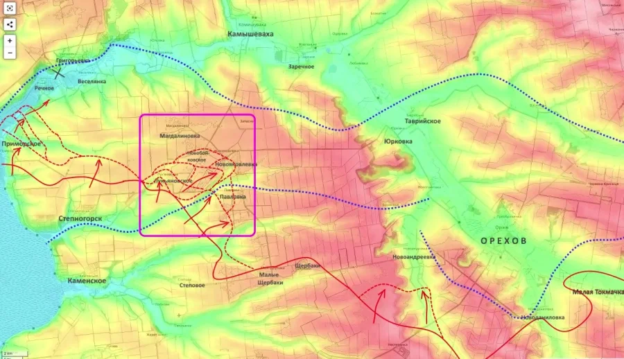 По данным противника, наши войска уже контролируют южную часть Степногорска и малыми группами просачиваются в Приморское. Расстояние до окраин Запорожья сократилось до менее чем 15 километров.
