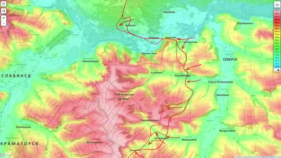 Совокупность этих маневров создает предпосылки для охвата Рай-Александровки с северо-востока и юго-востока. Контроль над водораздельными высотами восточнее Славянска и Краматорска — это необходимый плацдарм для освобождения всей агломерации.