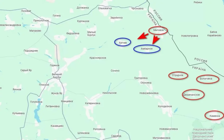 На севере, в районе Волчанска, российские войска продолжают давление в Волчанских Хуторах, планомерно продвигаясь вдоль берега Северского Донца.