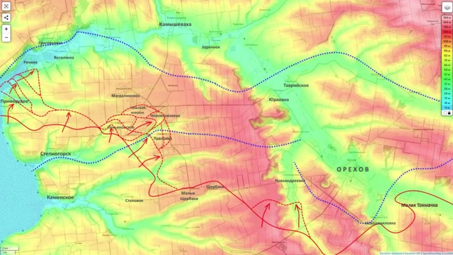 Параллельно идет наступление со стороны Приморского на Речное и Веселянку. В Речном уже завязались городские бои, наши части зацепились за окраины Веселянки. Продвижение идет вдоль реки Конка по направлению к Камышевахе.