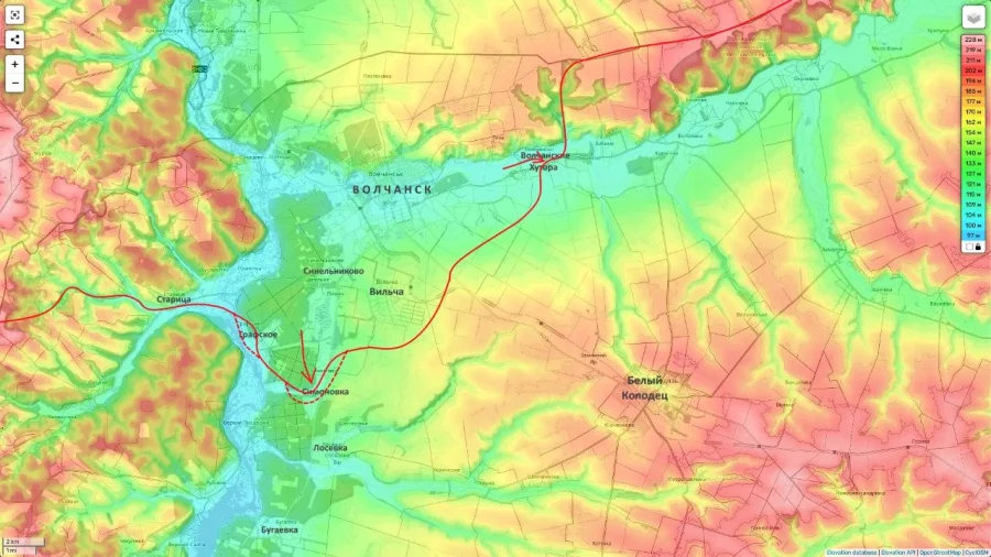 Одновременно с этим продолжается давление в районе Волчанских Хуторов. Цель — зачистка правого берега реки Волчанка до её истоков.