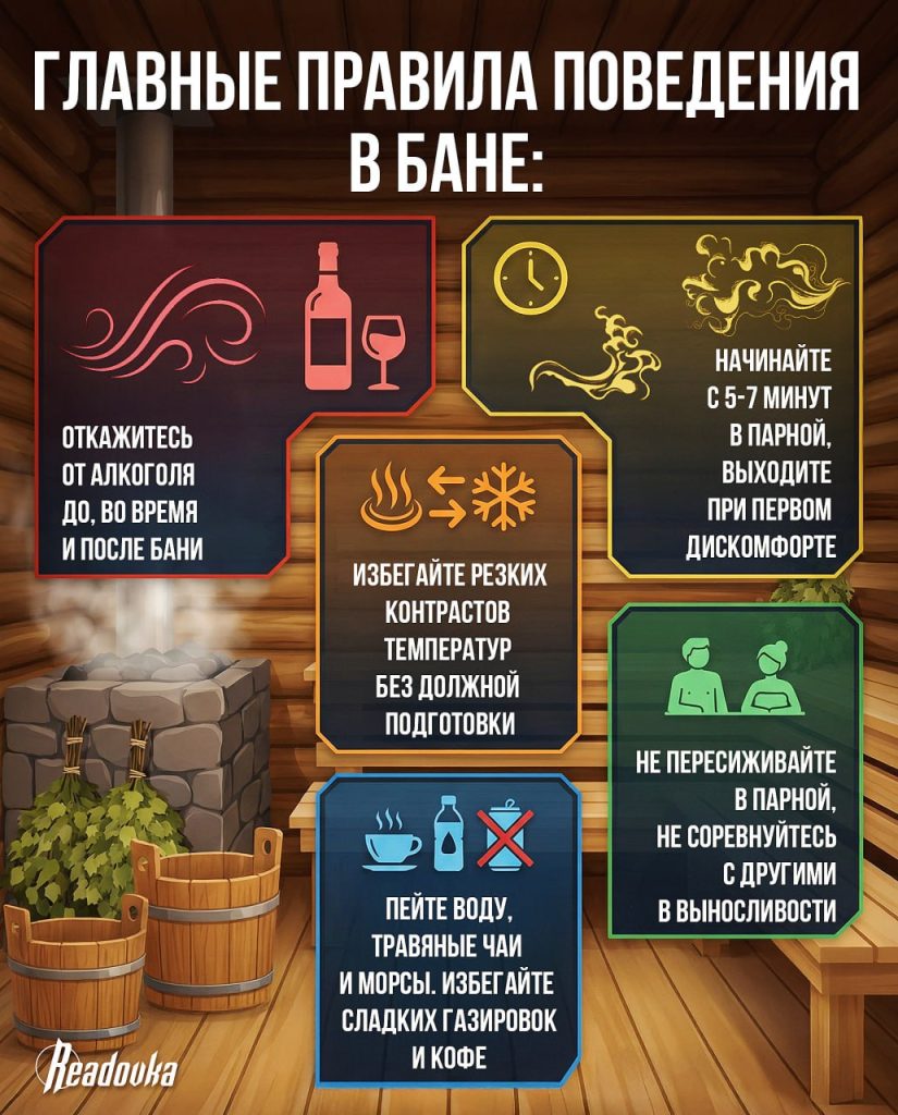 Если же противопоказаний нет и попариться хочется, врач рекомендовала соблюдать несколько ключевых правил. Во-первых, необходимо полностью отказаться от алкоголя до, во время и после бани, так как спиртное усиливает обезвоживание и является причиной более 70% травм в парной. Во-вторых, начинать следует с 5-7 минут в бане, немедленно выходя при первом дискомфорте. Важно также избегать резких контрастов температур без подготовки, не пересиживать в парной и не соревноваться в выносливости. В качестве питья подойдут вода, травяные чаи и морсы, а от сладких газировок и кофе стоит воздержаться.