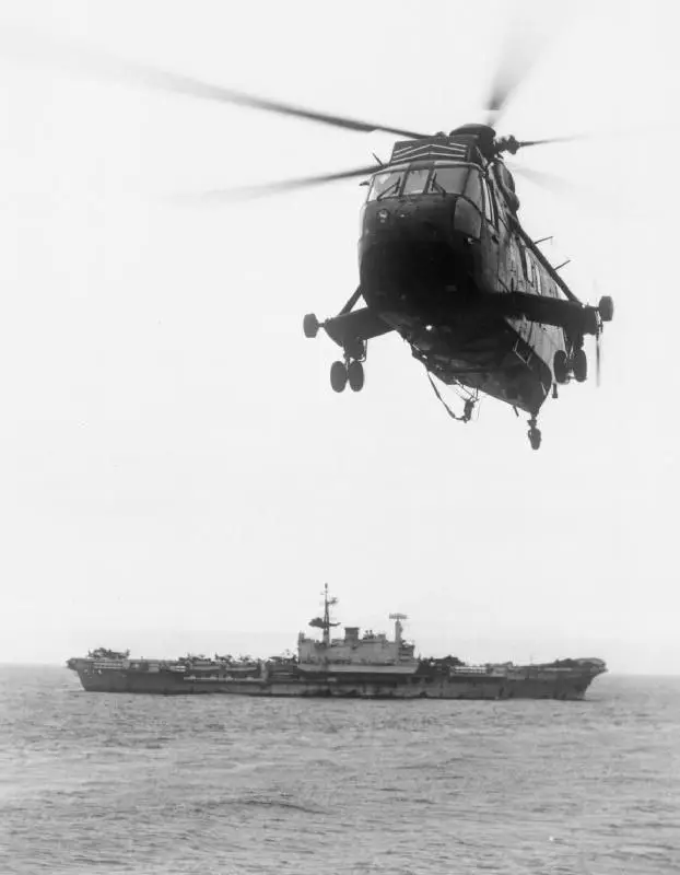 «Си Кинг 4» на фоне авианосца «Гермес»