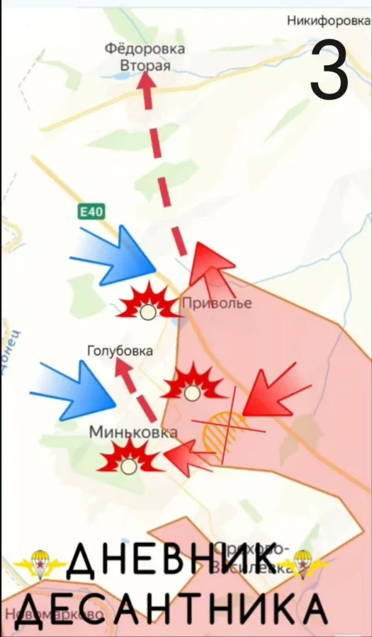 - На южном фланге (район трассы М-03) взята под контроль сеть опорных пунктов между Миньковкой и автомагистралью. Развивается наступление на Голубовку.