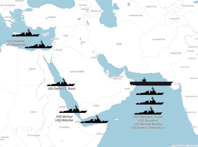 Риск новых ударов ВС США по Ирану постепенно нарастает с последовательным увеличением группировки у иранских берегов. По состоянию на 29 января в Ближневосточном регионе уже находится 8 эсминцев и авианосец, а также более 40 единиц тактической авиации США.