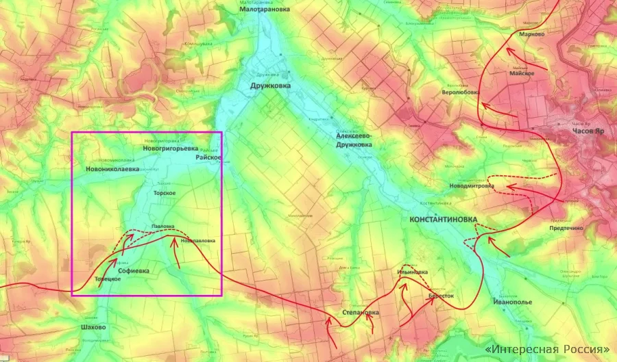 В районе Торецка зачищены северные окраины, продвижение продолжается в сторону Новогригоровки и Новониколаевки вдоль реки Казённый Торец. Бои идут за Павловку и прилегающие рубежи.