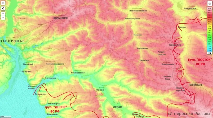 Наиболее активные действия фиксируются в полосе группировки «Днепр». Российские подразделения продолжают развивать наступление в районе ключевых населённых пунктов Лукьяновское, Новояковлевка, Павловка и Малояковлевка. По поступающей информации, основная часть этих сёл уже находится под контролем российских сил, продолжаются лишь локальные зачистки.
